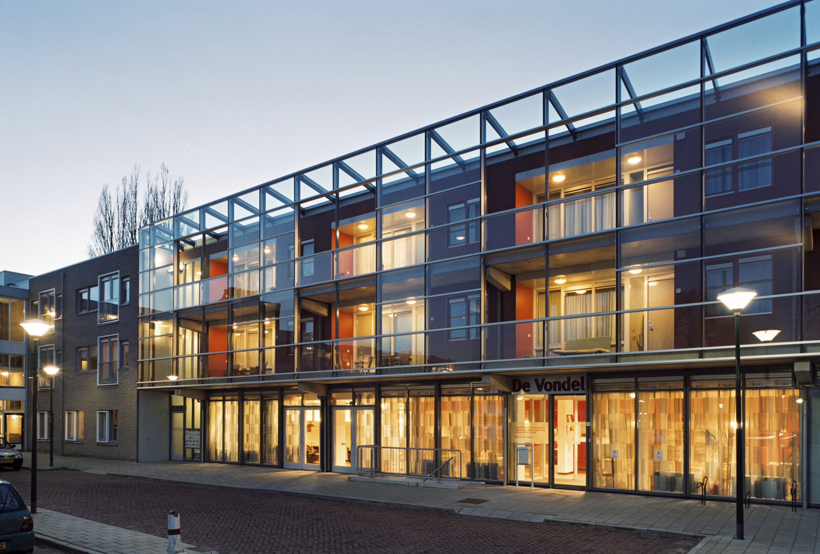 In opdracht van Portaal ontwierpen we 19 koop- en 21 huurappartementen, als aanleunwoningen bij zorgcentrum Maria Dommer in Maarssen. De huurwoningen zijn eenzijdig georiënteerd, de koopwoningen hebben een eigen plekje aan de besloten galerij en een groot balkon aan de buitenkant van het complex.